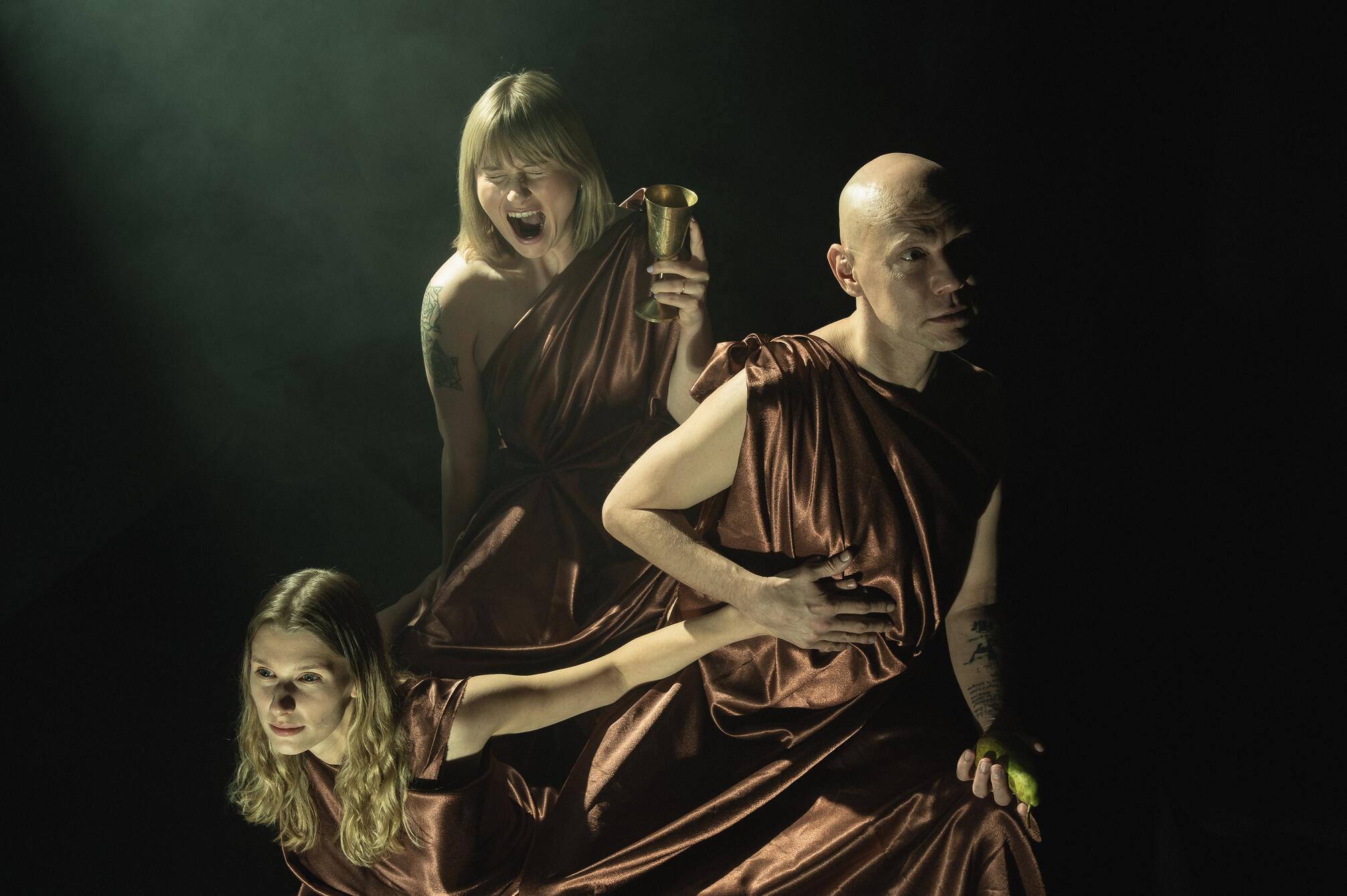 The characters of “Awaken Your Inner Goddess” are brought to life by actors Roberta Sirgedaitė, Milda Naudžiūnaitė, Gytis Ivanauskas, and Adomas Jasiukėnas. The original play was written by emerging playwright Kristina Marija Kulinič, whose works have already been staged in Lithuania (Teatronas, Artūras Areima Theatre, No Shoes Theatre) as well as at the Latvian National Theatre. This is not her first collaboration with director Gildas Aleksa—they previously created “Sodra, Mon Amour” (Teatronas) in 2021.