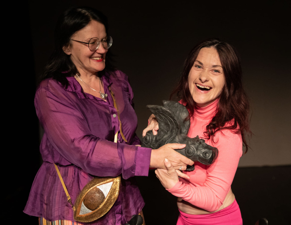 The GRAND PRIX award went to the remarkable performer Ernesta Žemaitytė, who took on roles in three festival performances! We are also very proud that just recently — on 11 May — Ernesta represented our theatre and performed at the international theatre festival Nieprzetarty Szlak in Lublin with her miniature piece “Metamorfozė” (Metamorphosis)!